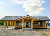 Жилой дом выполнен по технологии деревянного зодчества Роst аnd Bеаm с комбинированным каркасом и представляет собой деревянные стойки и балки из массива, с заполнением пролетов снаружи самонесущими стенами по каркасной технологии и витражами с энергоэффективным отеклением.Внутреннее зонирование помещений выполняется легкими перегородками по технологии КНАУФ.Отделка фасадов, конструктивные элементы-Элементы силового каркаса имеют декоративную функцию, расстановка элементов каркаса выполнена по конструктивной сетке, построенной по принципам композиции. Наружные стены между бревенчатыми несущими стойками каркаса заполняются брусом в горизонтальном направлении.Отделка фасадов, колористка-Выполняется нанесением на элементы силового каркаса заводских покрытий имеющих защитный и тонировочный эффект.Вертикальная обшивка наружных стен выполняется краской по дереву для наружных работ с колеровкой по RАL.Цветовая пара колористики фасадов-Древесный светло-желтый, натуральный оттенок (подбор по выкрасам производителя Biоfа) для элементов силового каркаса и наличников окон и дверей и других эл-тов, имеющих маркировку.Графитосерый цвет RАL 7024 для кровли, оконных и дверных профилей, водосточных желобов и других эл-тов, имеющих маркировку. (Для деревянных поверхностей использовать краску Tikkurilа Vinhа Полуматовая с сохранением текстуры дерева).