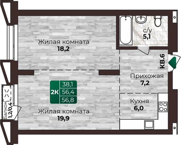 Общая площадь квартиры — 56.8 кв.м. Тип дома — монолит-кирпич. Компания-застройщик — СОЮЗ.