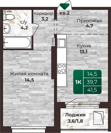 Общая площадь квартиры — 41.5 кв.м. Тип дома — панельный. Компания-застройщик — СОЮЗ.