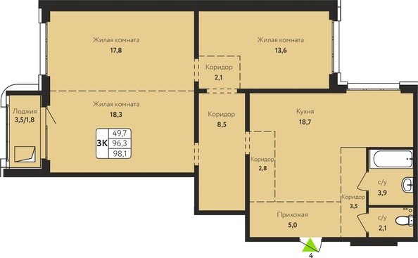 Продам 3-комнатную 98.1 кв.м. 4/17 этаж, панельный, Барнаул, Солнечная Поляна ул, 69.