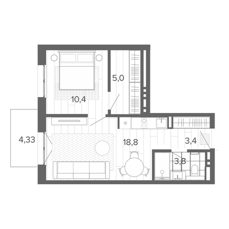 1-комн. 51.8 м²