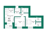 Общая площадь квартиры — 62.1 кв.м. Тип дома — кирпичный. Компания-застройщик — СЗ Сибкоминвест.