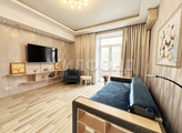 Большая кухня с обеденной зоной, просторная комната (установлен кондиционер), совмещенный санузел (кафель, джакузи, водонагреватель). Пластиковые окна. Высокие потолки. Прихожая позволяет организовать удобную входную и гардеробную зоны. Большое количество вместительных встроенных шкафов.