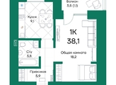 Общая площадь квартиры — 38.1 кв.м. Тип дома — кирпичный. Компания-застройщик — СЗ Сибкоминвест.