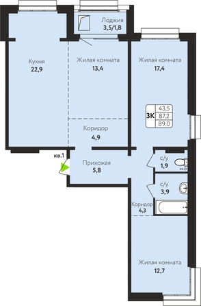Продам 3-комнатную 89 кв.м. 5/10 этаж, панельный, Барнаул, Солнечная Поляна ул, 71.